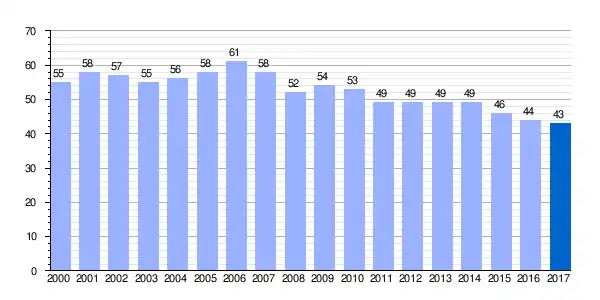 Gráfica de evolución demográfica de Leciñana del Camino[2] entre 2000 y 2017 |