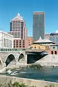 - Junto a otros edificios vista desde el río Genesee