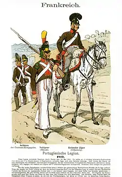 Al servicio de Napoleón, la Legión portuguesa luchó en las campañas de Alemania, Austria y Rusia, sufriendo grandes bajas. Estuvo presente en las batallas de Wagram, Smolensk, Vitebsk y Borodinó (Moscú). Siendo altamente consideradas por Napoleón, las tropas de la Legión fueron nombradas por él como la "Infantería Negra".