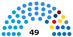 La legislatura se renueva completamente cada 4 años. Los legisladores pueden ser reelegidos por un nuevo período consecutivo, y no pueden ser elegidos nuevamente sino con un intervalo de un período.