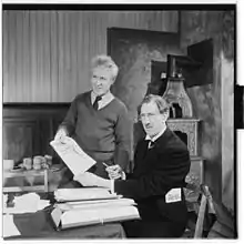 Uno de los mayores éxitos de la historia del teatro noruego se estrenó en 1950, la farsa de Bias Bernhoft Bare jatt me'n. Casi 800 representaciones más tarde, la farsa fue reescrita y adaptada a la pantalla como la película Fjols til fjells, que protagonizaba Juster.