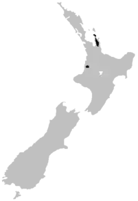 Se encuentra solo en la Península de Coromandel y cerca de Te Kuiti en la Isla Norte de Nueva Zelanda.