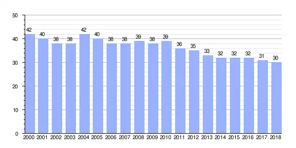 Gráfica de evolución demográfica de Lema de Abaixo entre 2000 y 2018 |