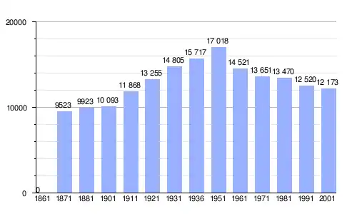Gráfica de evolución demográfica de Lendinara entre 1861 y 2001 |
