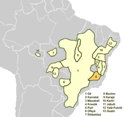- Purí (†, Espírito Santo, Rio de Janeiro, NE São Paulo, SE Minas Gerais)