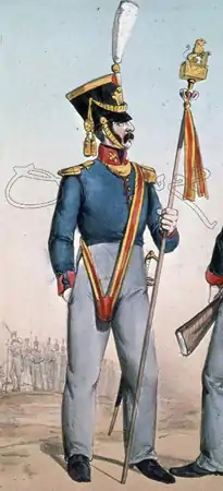 Leonífero (1821) Del álbum de Infantería publicado por la Dirección del arma (Archivo Histórico Militar).