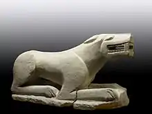 Representa a una leona tumbada y en actitud amenazante, y seguramente fue parte de un monumento funerario cuya tumba estaría protegiendo simbólicamente.