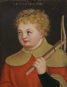 Leopoldo y su hermano Federico II (1327-1344), hijos de Otón con su primera esposa, Isabel de Baviera —una hija de Esteban I, duque de Baviera por su matrimonio con Jutta de Schweidnitz—, después de la muerte de su padre en 1339, fueron ambos duques titulares de Austria, pero ambos murieron antes de la mayoría de edad.[1]