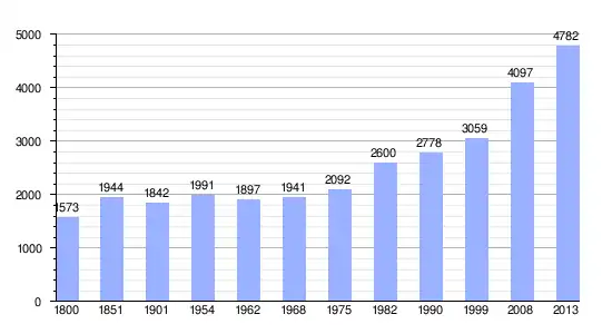Gráfica de evolución demográfica de Les Achards entre 1800 y 2013 |