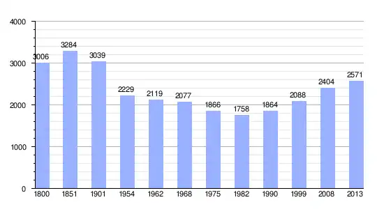 Gráfica de evolución demográfica de Les Bois-d'Anjou entre 1800 y 2013 |