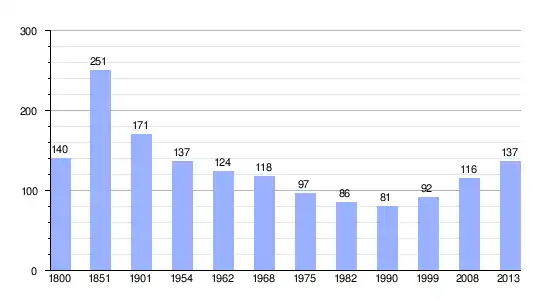 Los datos demográficos contemplados en este gráfico de la comuna de Les Chambres[4] se han cogido de 1800 a 1999 de la página francesa EHESS/Cassini, y los demás datos de la página del INSEE.[5]