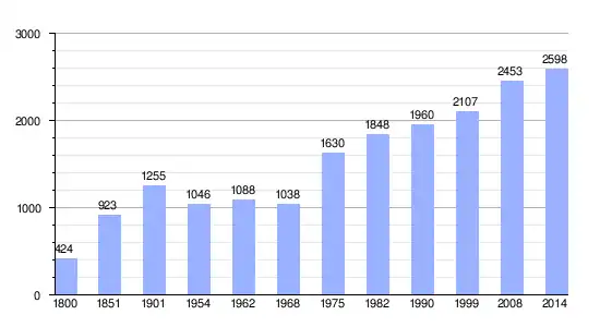 Gráfica de evolución demográfica de Les Clouzeaux entre 1800 y 2014 |