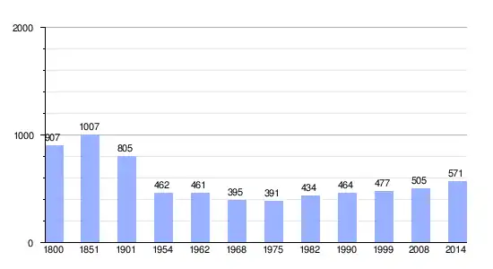 Gráfica de evolución demográfica de Les Coteaux-Périgourdins entre 1800 y 2014 |