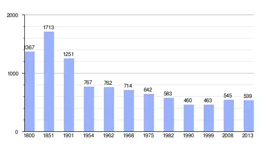 Gráfica de evolución demográfica de Les Hauts-de-Forterre entre 1800 y 2013 |