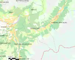La comuna está situada en el valle de Chamonix, en el norte de los Alpes, a los pies del Mont-Blanc, en la ribera del Arve. Es atravesada por la carretera nacional 205 en dirección a Chamonix-Mont-Blanc.