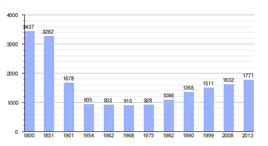 Gráfica de evolución demográfica de Les Monts-d'Andaine entre 1800 y 2013 |