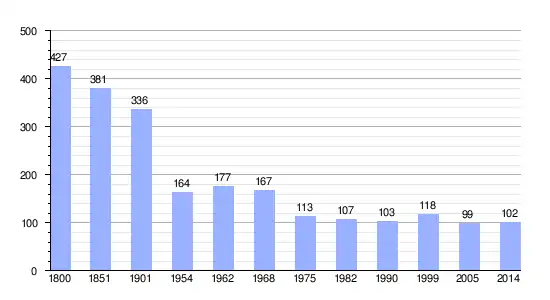 Gráfica de evolución demográfica de Les Vignes entre 1800 y 2014 |