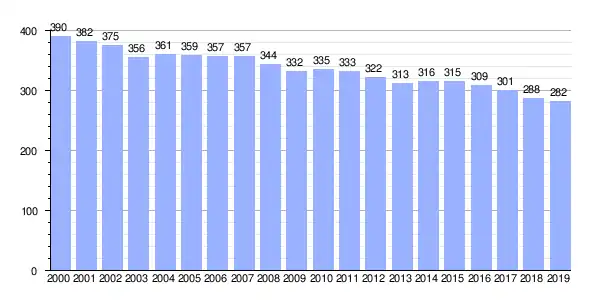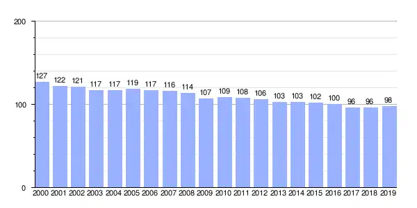 Gráfica de evolución demográfica de Lesende (lugar) entre 2000 y 2019 |