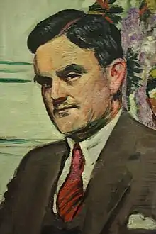Sin embargo, poco después de regresar a la Costa Azul (Francia) en 1929, Hunter sufrió una grave crisis, lo que obligó a su hermana a llevarlo a la casa de Escocia en septiembre. Se recuperó y comenzó a pintar una serie de retratos de sus amigos, entre ellos uno de Tom Honeyman, Director de la Galería de Arte y Museo de Glasgow desde 1939 hasta 1954.[13][16] Honeyman, en ese momento un comerciante de arte , ayudó a Hunter a desarrollar su carrera, y pintar el hacerle el retrato pudo haber sido un gesto de agradecimiento.[17]
