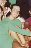 ![]() Leticia (abajo, segunda a la derecha) con la selección española de gimnasia rítmica (1975). |