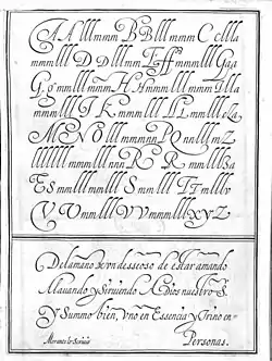 1. Tanto el haber dado mayor curvatura a la letra angulosa llamada cancellaresca, cuanto el haber mudado este nombre en el de bastarda, con el que se conoce en la Europa hasta el día, se debe entre los italianos a Fr. Vespasiano Amphiareo, como se verá en su lugar.