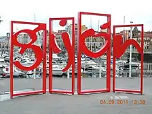 - San Sebastián. Las letras son de color azul y están situadas en los jardines del Palacio Miramar, con la bahía de La Concha de fondo. Las letras tienen medio metro de espesor y están apoyadas sobre una base metálica.[3]