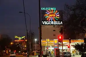 El cartel está constituido por tubos de neón que se encienden a las nueve de la noche en el verano y en invierno, a las seis.[5]
