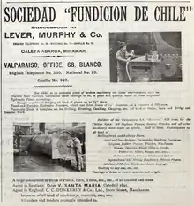 1880 | Lever i Compañia | Richard Lever, William J. Murphy, James Sewers, Norman Ferguson | 100.000 | Calderería y Maquinarias de Chile |
