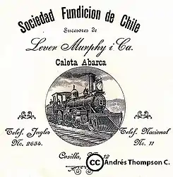 ![]() Membrete de Lever, Murphy & Co. circa 1905. El grabado muestra la locomotora de carga n° 150 Victoria, construida por ellos para EFE en 1889. | |||||