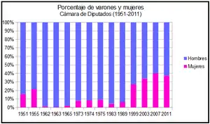 Si bien la presencia de mujeres en los órganos legislativos aumentó levemente en los gobiernos constitucionales de Cámpora-Perón-Martínez de Perón (1973-1976) y Alfonsín (1983-1989), la cultura de marginación de las mujeres de los órganos legislativos continuó. Esta situación llevó a que en 1991 se sancionara la Ley de cupo femenino, reemplazada en 2017 por la Ley de Paridad de Género en Ámbitos de Representación Política.