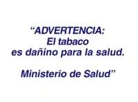 El decreto N.º 49 del Ministerio de Salud, de 24 de agosto de 2012, regula la advertencia sanitaria para los envases de productos hechos de tabaco (como cigarros).[11]