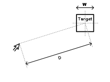 - D es la distancia desde el punto inicial hasta el centro del objetivo (tradicionalmente, se ha usado el símbolo A , indicando la amplitud del movimiento) y