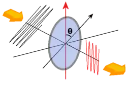 Ángulo entre el eje del analizador y el eje de polarización de la luz incidente |