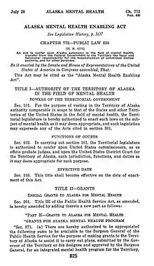 - Alaska Mental Health Bill, H.R. 6376, 16 de enero de 1958.