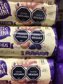 Se realiza una rotulación a través del diseño octagonal de fondo negro y borde blanco de 3,5 por 3,5 cm, que marcan la cantidad de exceso de: sodio, azúcares, grasas y grasas saturadas. El rotulado nutricional es toda descripción destinada a informar al consumidor sobre las propiedades nutricionales que tiene un alimento.[1]