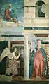 Algunas escenas bíblicas como la Anunciación, son incluidas en el tema de este ciclo por iniciativa del pintor. La Anunciación no es estrictamente parte de la Leyenda de la Vera Cruz pero probablemente fue incluida por Piero della Francesca debido a su significado universal.