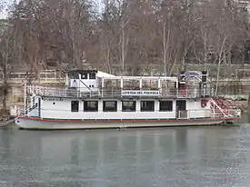 Vista del barco Leyenda del Pisuerga, atracado en la playa de las Moreras (río Pisuerga) en enero del 2011.
