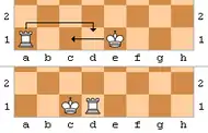 - Que el Rey y la Torre estén en la misma fila (Schiller 2003).[nota 2]