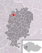 Se encuentra ubicada al norte de la región, en la cuenca hidrográfica del río Berounka —un afluente izquierdo del río Moldava que, a su vez, lo es del Elba—, y cerca de la frontera con la región de Bohemia Central.[1]