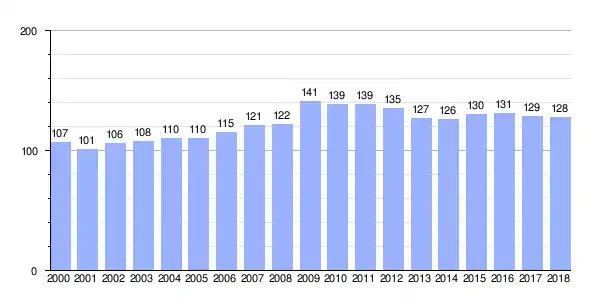Gráfica de evolución demográfica de Liñares entre 2000 y 2018 |
