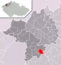 Se encuentra ubicada al noroeste de la región, en la ladera sur de los montes Metálicos, cerca del río Ohře —un afluente izquierdo del río Elba—, de la región de Karlovy Vary y del estado alemán de Sajonia.[1]
