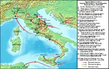 En Italia, la situación se estaba deteriorando rápidamente para el imperio. El rey Totila había reconquistado gran parte del país y amenazaba Sicilia. En 550, después de muchas dudas, Liberio fue enviado con un ejército a la isla. Logró desembarcar y sitiar la ciudad de Siracusa, pero su inexperiencia militar no le permitió realizar operaciones significativas contra los godos. A pesar de ello, abandonó la ciudad con su ejército y se dirigió a Palermo donde, en el 551, fue reemplazado por el general Artabanes.[13]