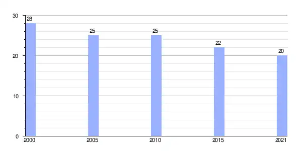 Gráfica de evolución demográfica de Licín (parroquia) entre 2000 y 2021 |