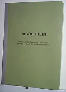 Una licencia de caza alemana es un certificado que otorga al titular el ejercicio de cazar dentro de las ordenanzas legales. Es también la condición para poseer armas y munición (número ilimitado de escopetas y rifles y hasta dos armas cortas). El derecho a ejercer la caza en un área específica es empoderado a sus respectivos terratenientes (si poseen un área de más de 0.75 kilómetros cuadrados (190 acres), de lo contrario los terratenientes deben agruparse en una asociación) quiénes pueden utilizar sus derechos para arrendarlo.