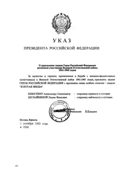 - «Шулайкина Лидия Ивановна». warheroes.ru. Consultado el 11 June 2018.