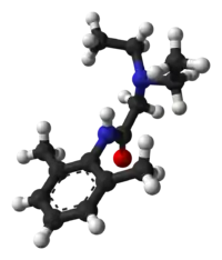 La lidocaína o xilocaína es un fármaco perteneciente a la familia de los anestésicos locales, concretamente del tipo de las amino amidas, entre los que también se encuentran la dibucaína, la mepivacaína, la etidocaína, la prilocaína y la bupivacaína. Fue sintetizada por Nils Löfgren y Bengt Lundqvist en 1943. Actualmente, es muy utilizada por los odontólogos. También tiene efecto antiarrítmico, y está indicada por vía intravenosa o transtraqueal en pacientes con arritmias ventriculares malignas, como la taquicardia ventricular o la fibrilación ventricular.