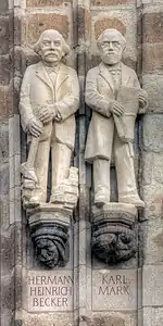 Mientras tanto la Liga había logrado reconstruirse en varios Estados alemanes —utilizando en muchas ocasiones como cobertura las sociedades gimnásticas y de tiro— gracias sobre todo a la labor de propaganda de Friedrich Lessner desde Maguncia y de Joseph Weydemeyer desde Frankfurt, y de la sección de Colonia, encabezada por Roland Daniels, Heinrich Bürgers y Hermann Heinrich Becker. Pero duró muy poco tiempo porque fue desmantelada por la policía a raíz de la detención en Leipzig en mayo de 1851 de un militante, el sastre Peter Nothjung, que llevaba encima una importante documentación. Los detenidos fueron acusados de participar en una vasta conspiración dirigida por Marx, y aunque cuatro fueron absueltos por el tribunal de Colonia, siete fueron condenados a diferentes penas de prisión —Marx escribió un folleto en su defensa titulado Revelaciones sobre el proceso de los comunistas de Colonia, cuya difusión fue impedida por la policía—. El juicio supuso el final de la Liga. Marx abandonó sus actividades revolucionarias para dedicarse a profundizar sus conocimientos de economía política lo que lo conduciría a la publicación quince años después del primer tomo de El Capital.[19]