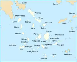 - Reger, Gary (1994). «The Political History of the Kyklades 260–200 B.C.». Historia (en inglés) 43 (1): 32-69. ISSN 0018-2311. JSTOR 4436314.