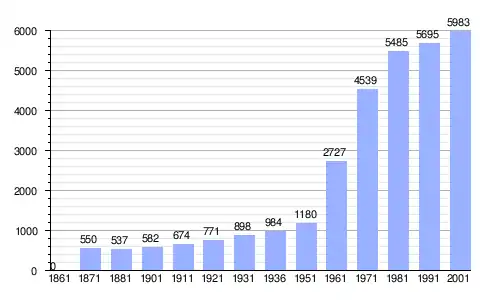 Gráfica de evolución demográfica de Lignano Sabbiadoro entre 1861 y 2001 |