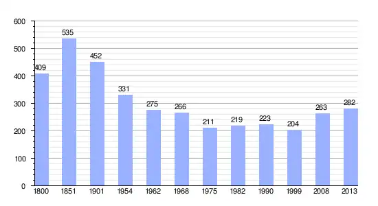Los datos demográficos contemplados en este gráfico de la comuna de Ligueux[4] se han cogido de 1800 a 1999 de la página francesa EHESS/Cassini, y los demás datos de la página del INSEE.[5]